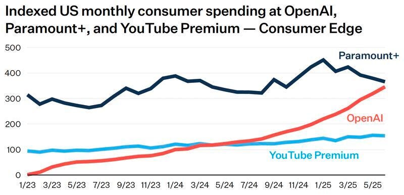 Het belangrijkste cijfer? Consumenten in de US geven nu bijna evenveel uit aan ChatGPT als aan Paramount+.