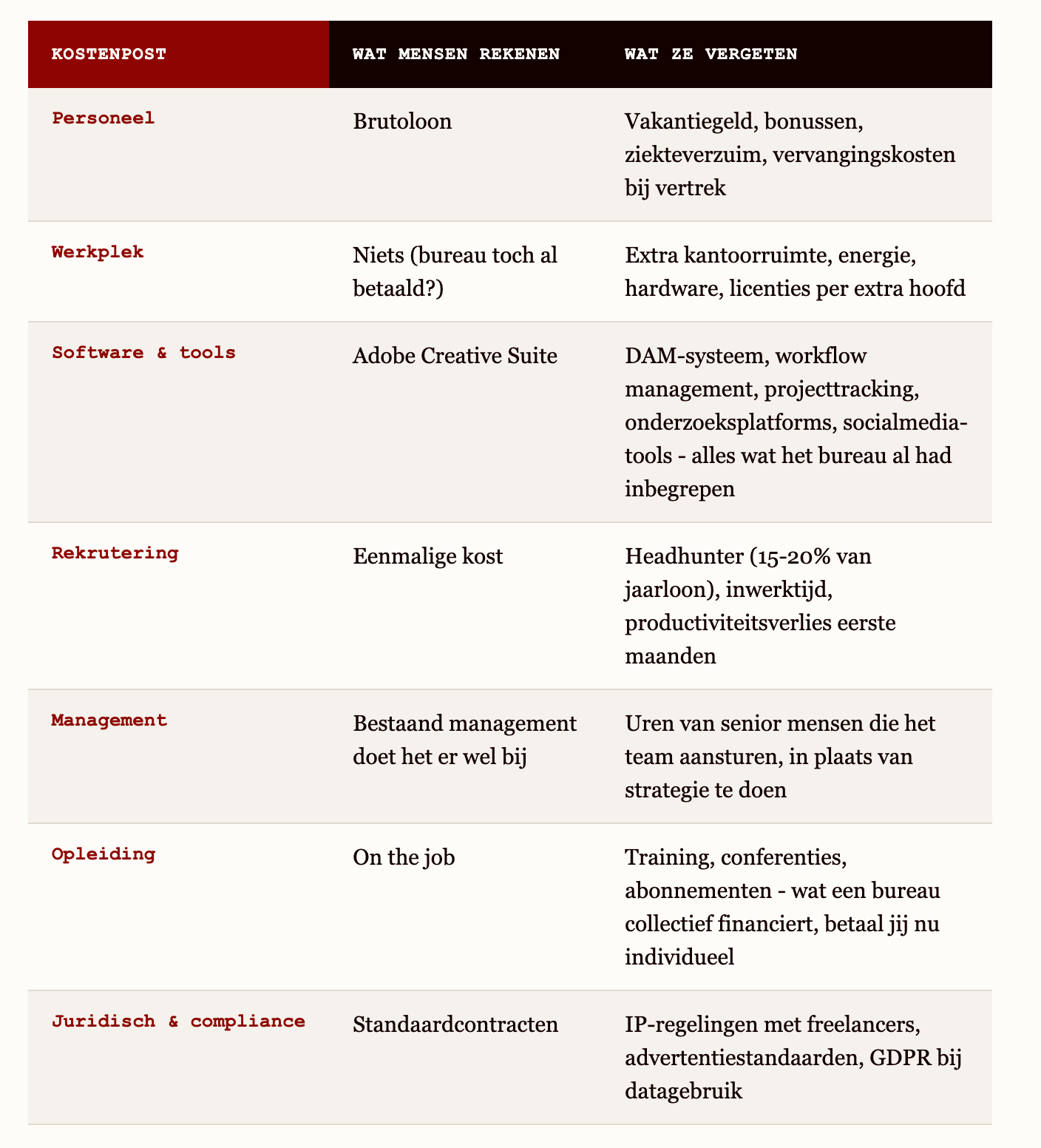 De echte kostprijs is hoger dan alleen salarissen: tools, overhead, rekrutering, management en retentie tellen mee