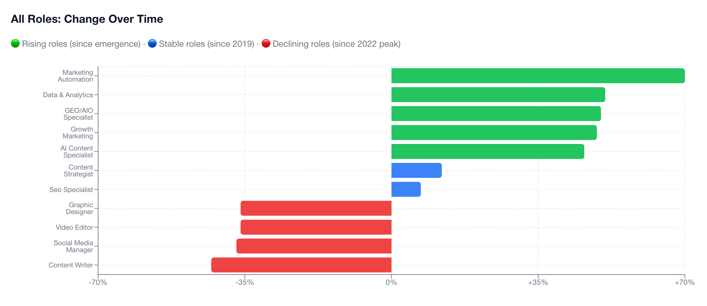 Hier wordt het pas echt interessant. De meest gewilde functies van 2025 zijn allemaal rollen die draaien rond AI, data en strategische interpretatie. Het rapport toont het bijna gênant duidelijk: