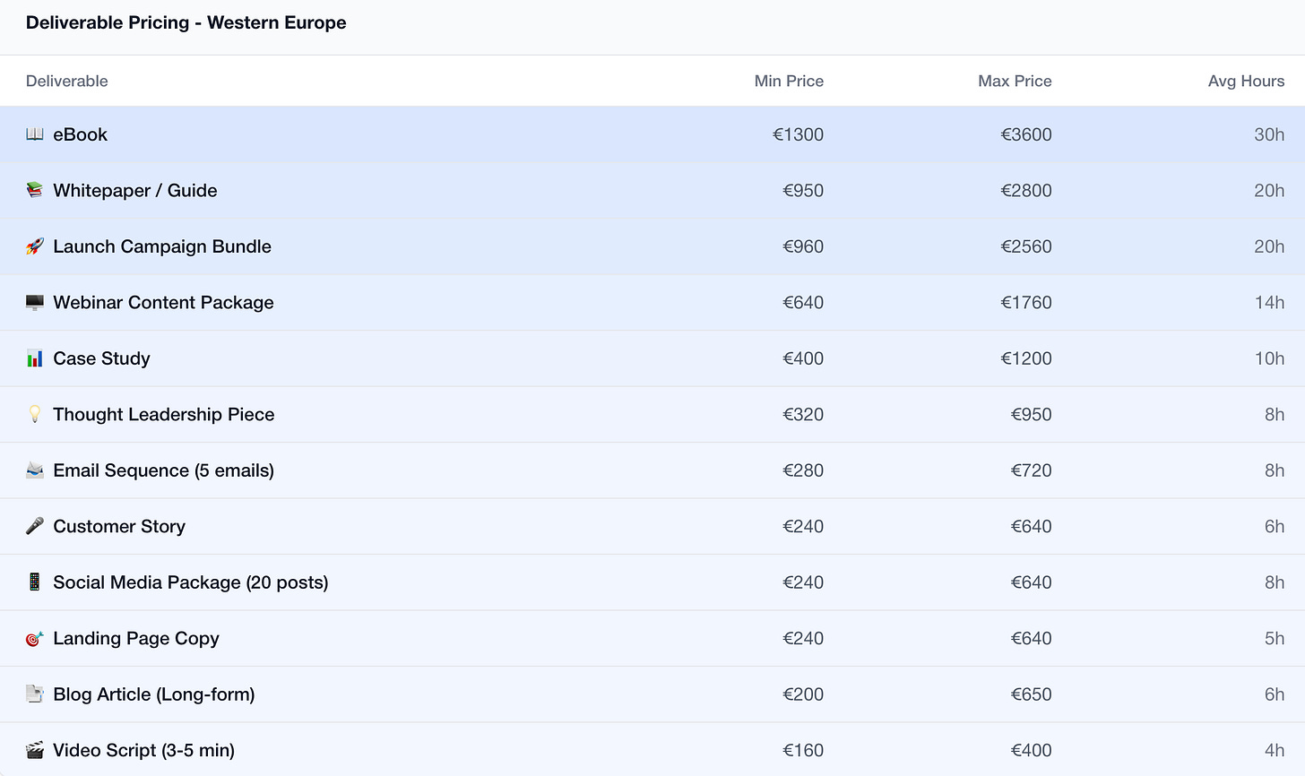 Maar zodra je hoger in de piramide klimt - case studies, whitepapers, landing pages, strategische stukken - blijft de waarde opvallend stabiel. Daar zit de nuance. AI veegt de onderkant van de markt weg, maar geeft de bovenkant een stevige glanslaag. Een whitepaper kost vandaag nog steeds tussen €950 en €2.800, een case study €400 tot €1.200, een thought leadership-stuk €320 tot €950, afhankelijk van complexiteit en senioriteit.